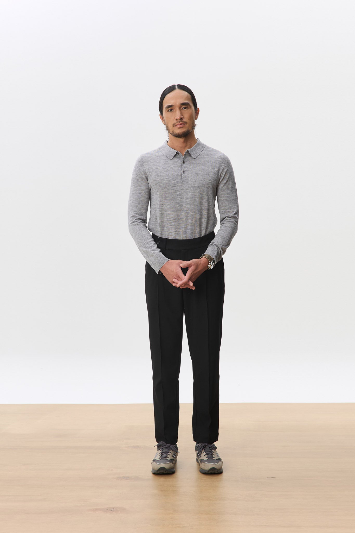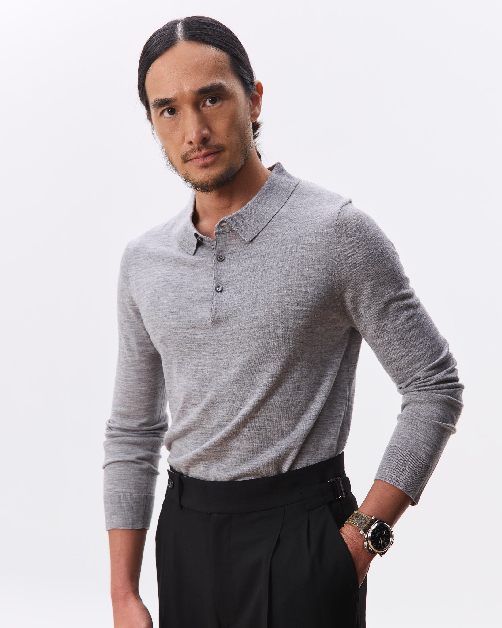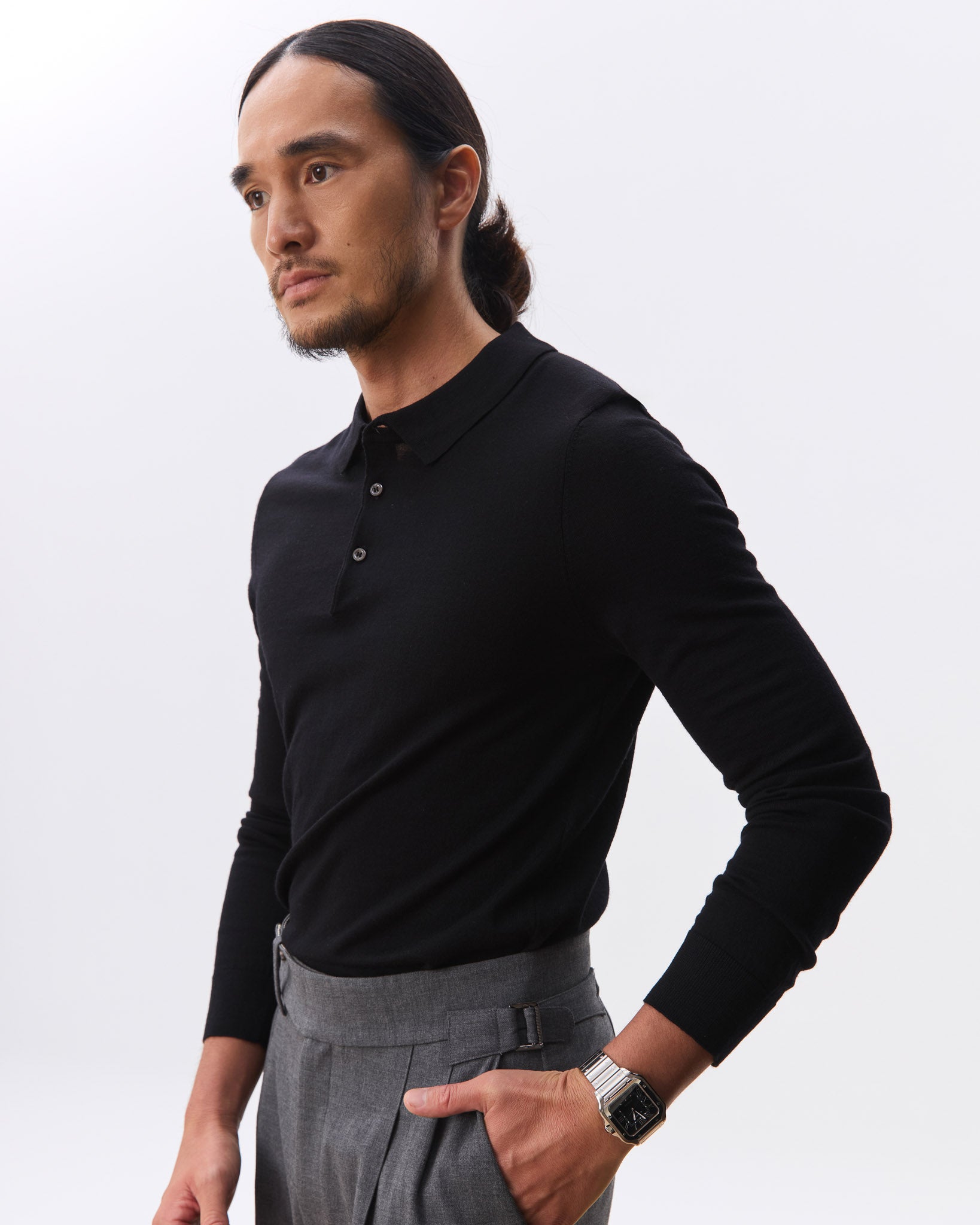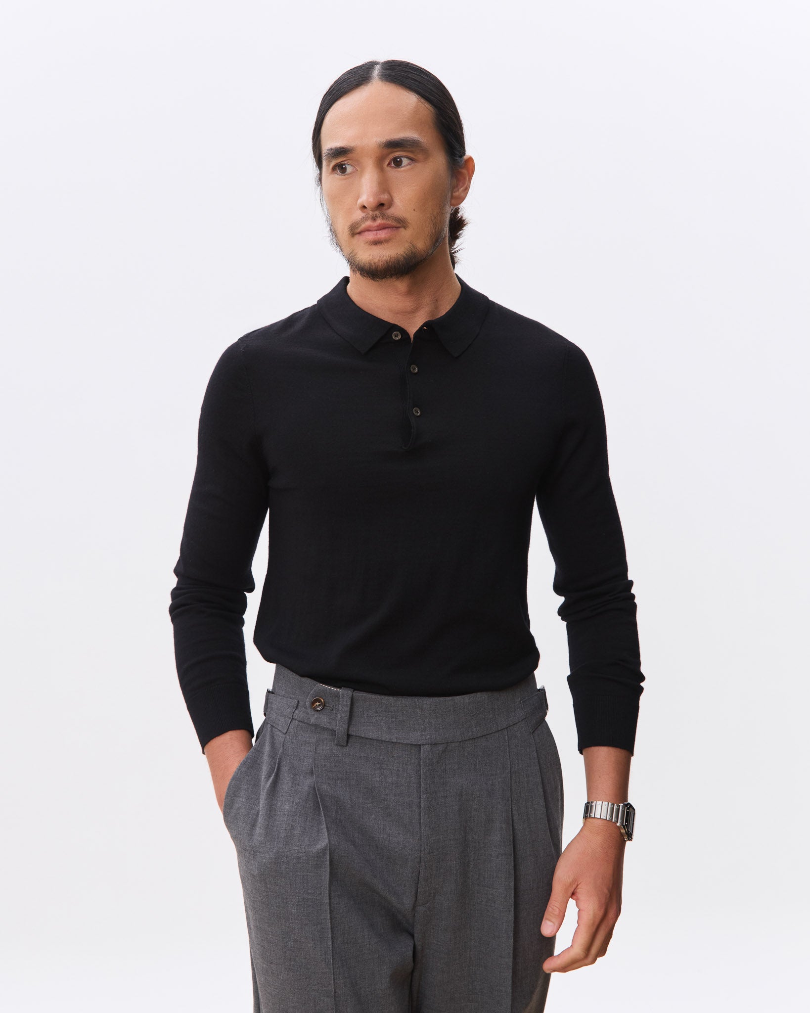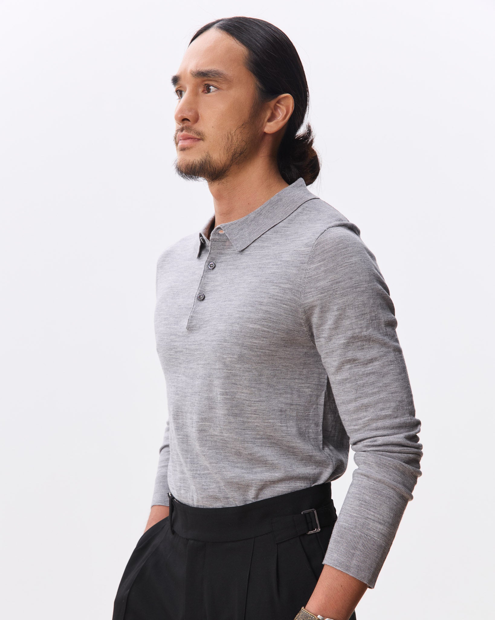 A sleek update to the classic polo, the Elio is crafted from 100% extra-fine Merino wool that’s lightweight enough for tropical climates yet refined enough for transitional layering. Designed with a slim silhouette, it features a clean 3-button placket and is finished with ribbed cuffs and hem for a polished look. A quietly confident piece that balances comfort, elegance, and versatility — ideal for cooler days or air-conditioned settings.