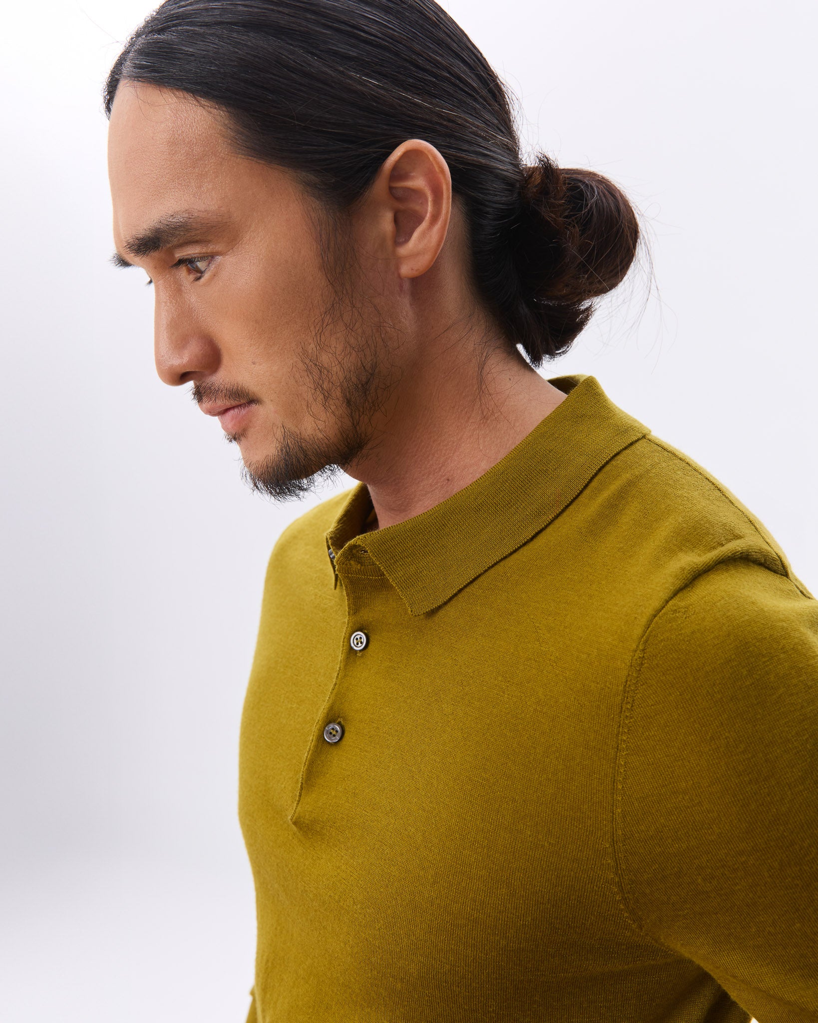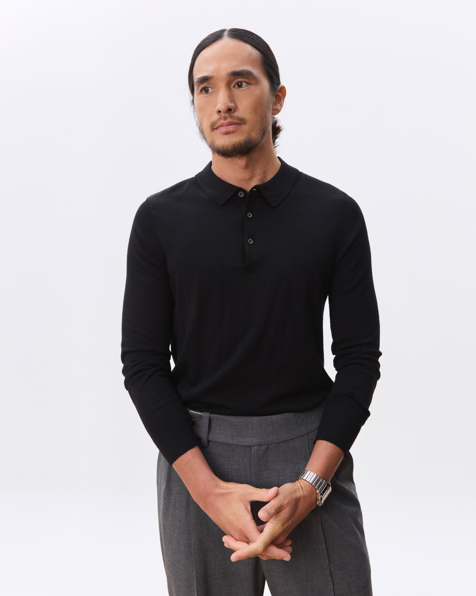 Elio Long Sleeve Knit Polo Top - 100% Merino Wool