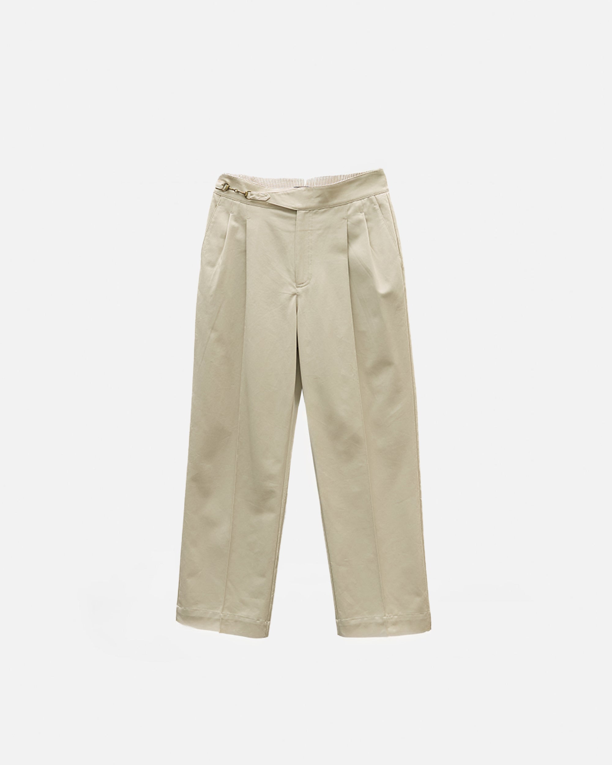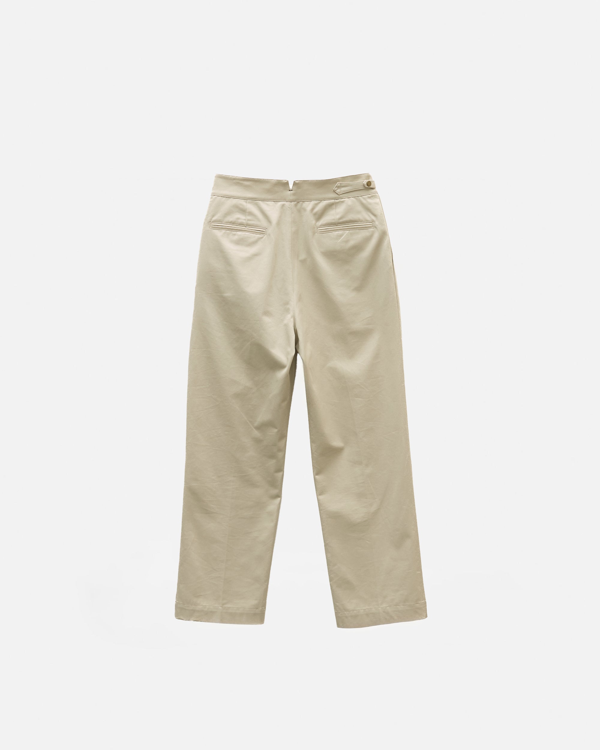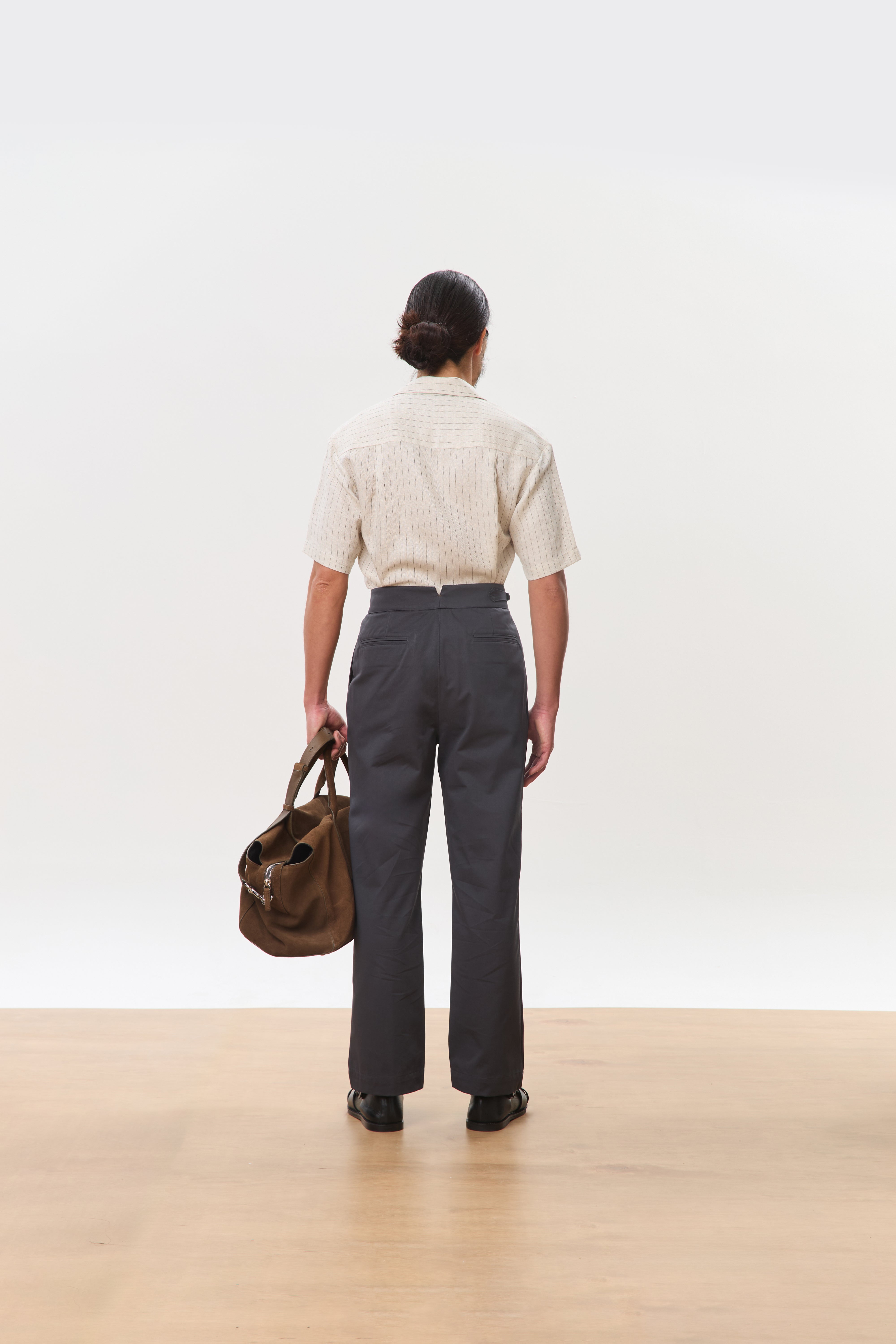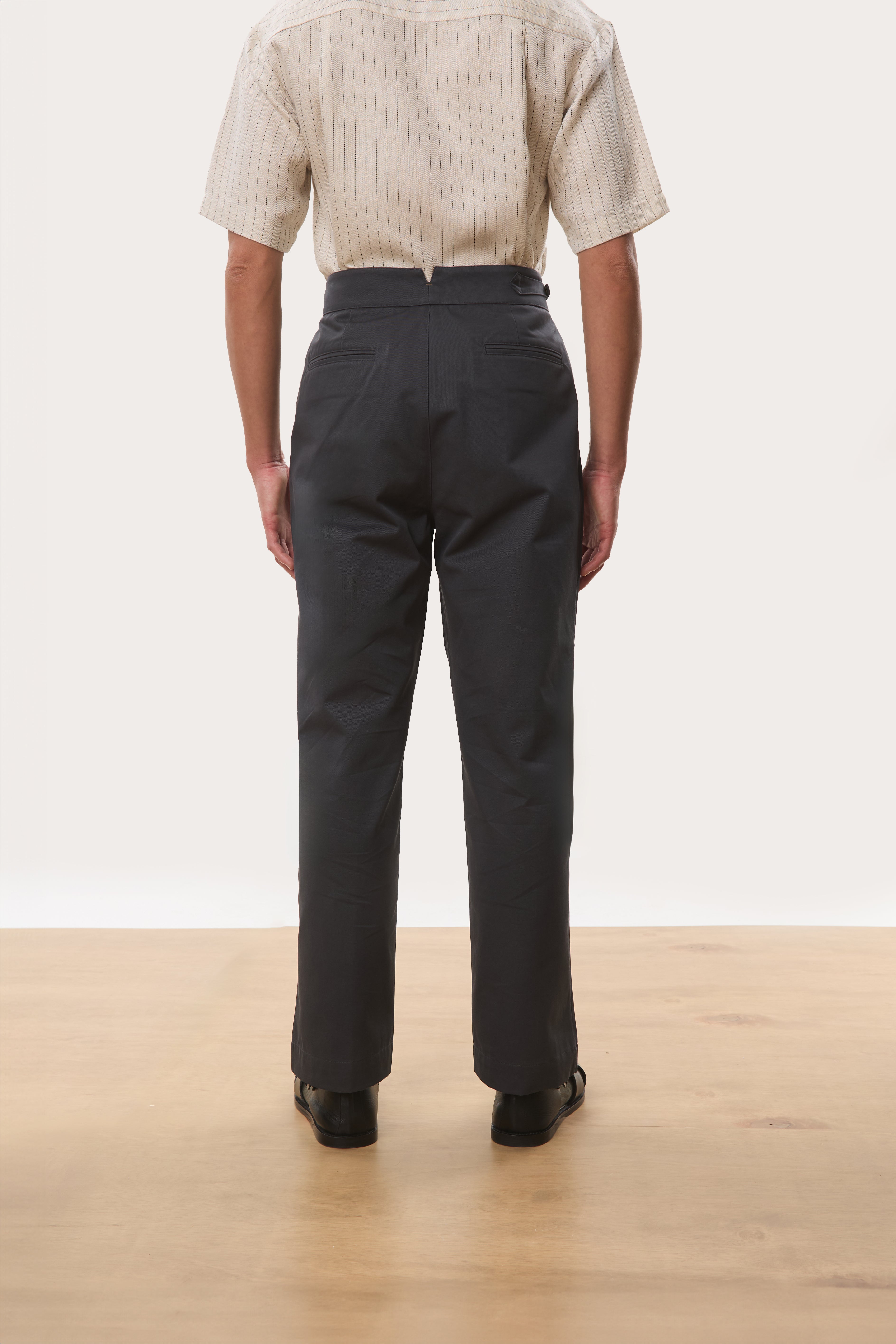 Designed with a strong, architectural silhouette, the Jann horsebit Gurkha trousers are cut from durable yet breathable 250gsm cotton twill for structure and everyday comfort. The high-waisted fit is anchored by signature Gurkha detailing with a horse-bit side fastening, while double forward-facing pleats create volume through the leg without sacrificing clean lines. Finished with double welt pockets at the rear, Jann balances classic tailoring with a modern, wide-leg proportion that works effortlessly across casual and elevated settings.