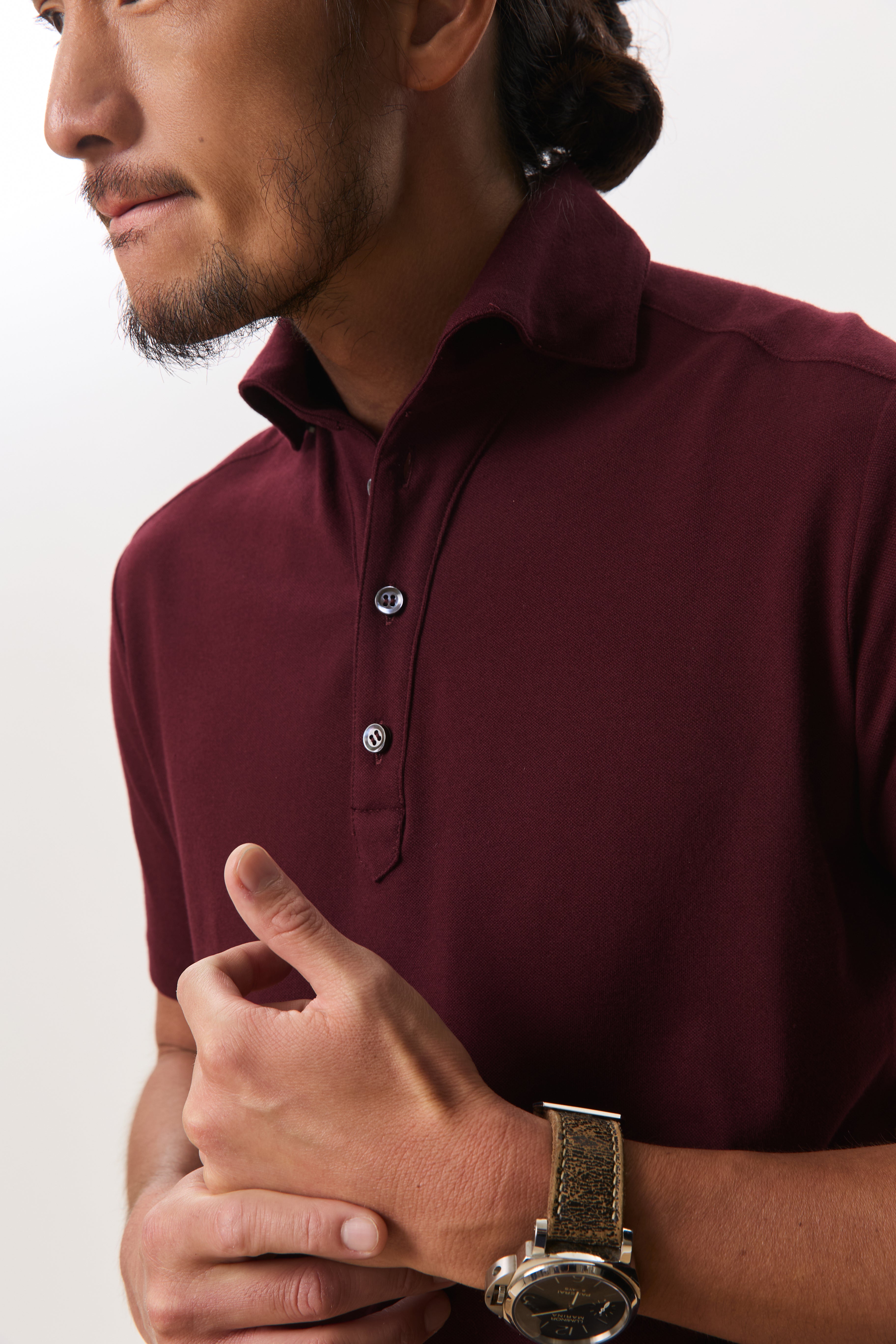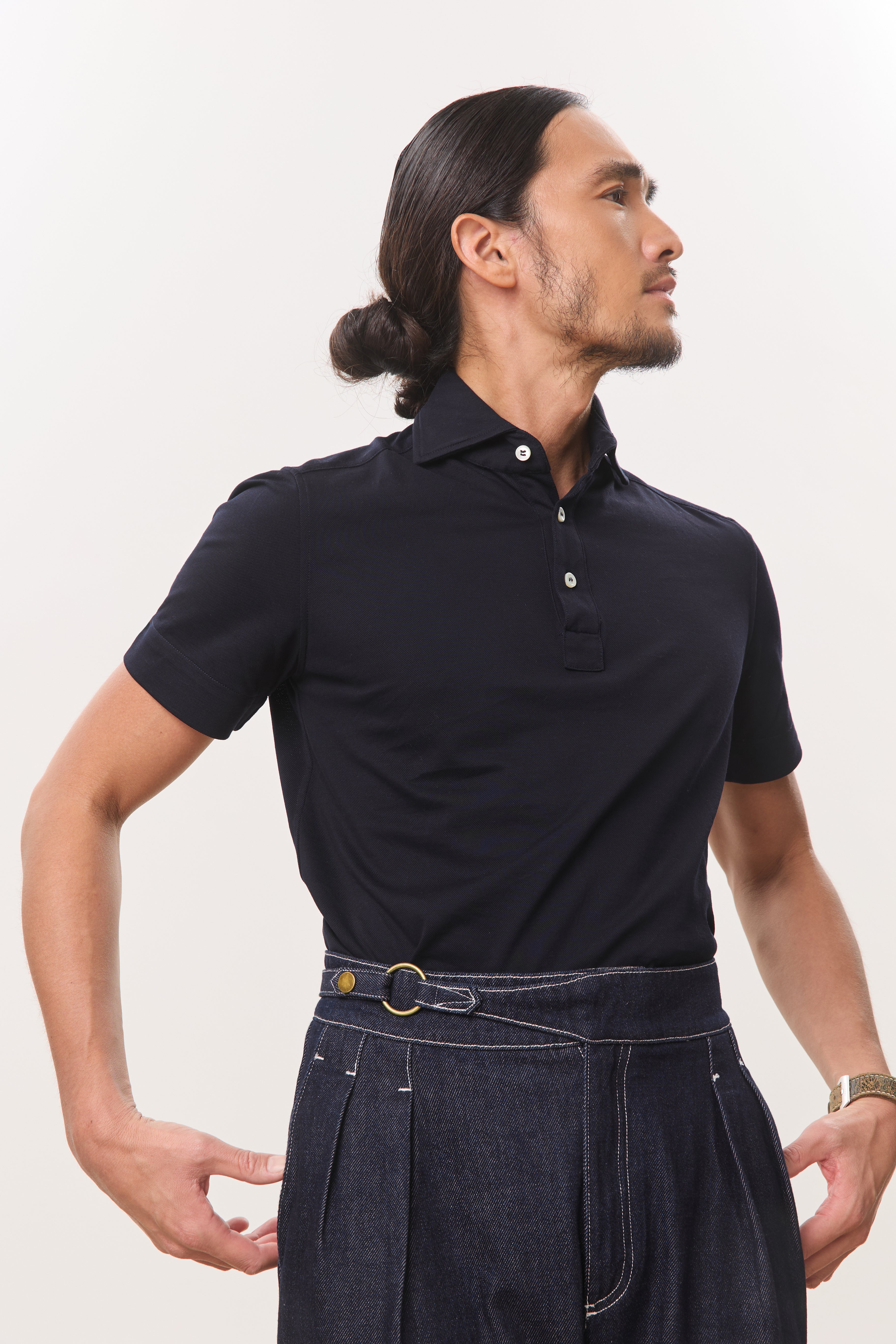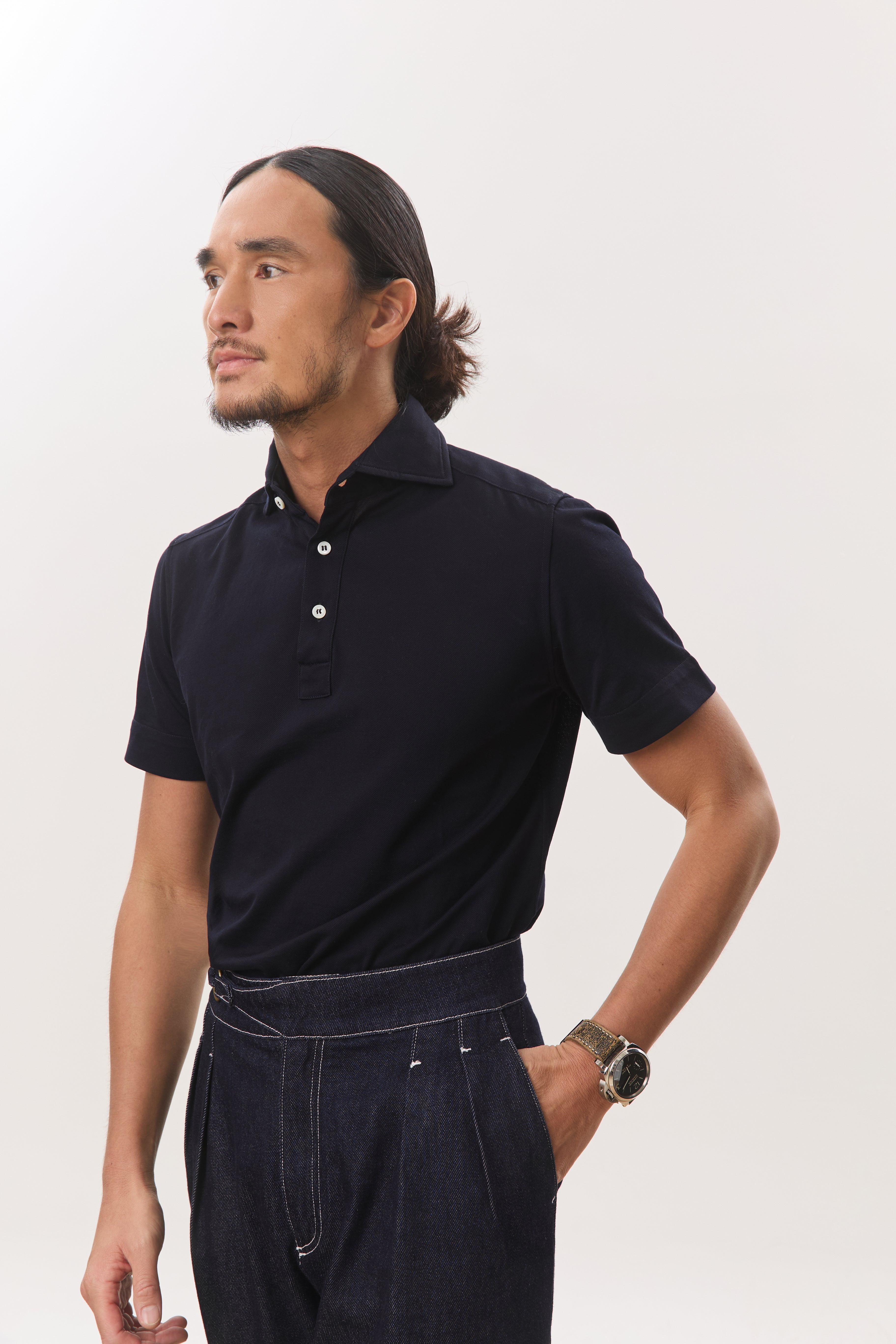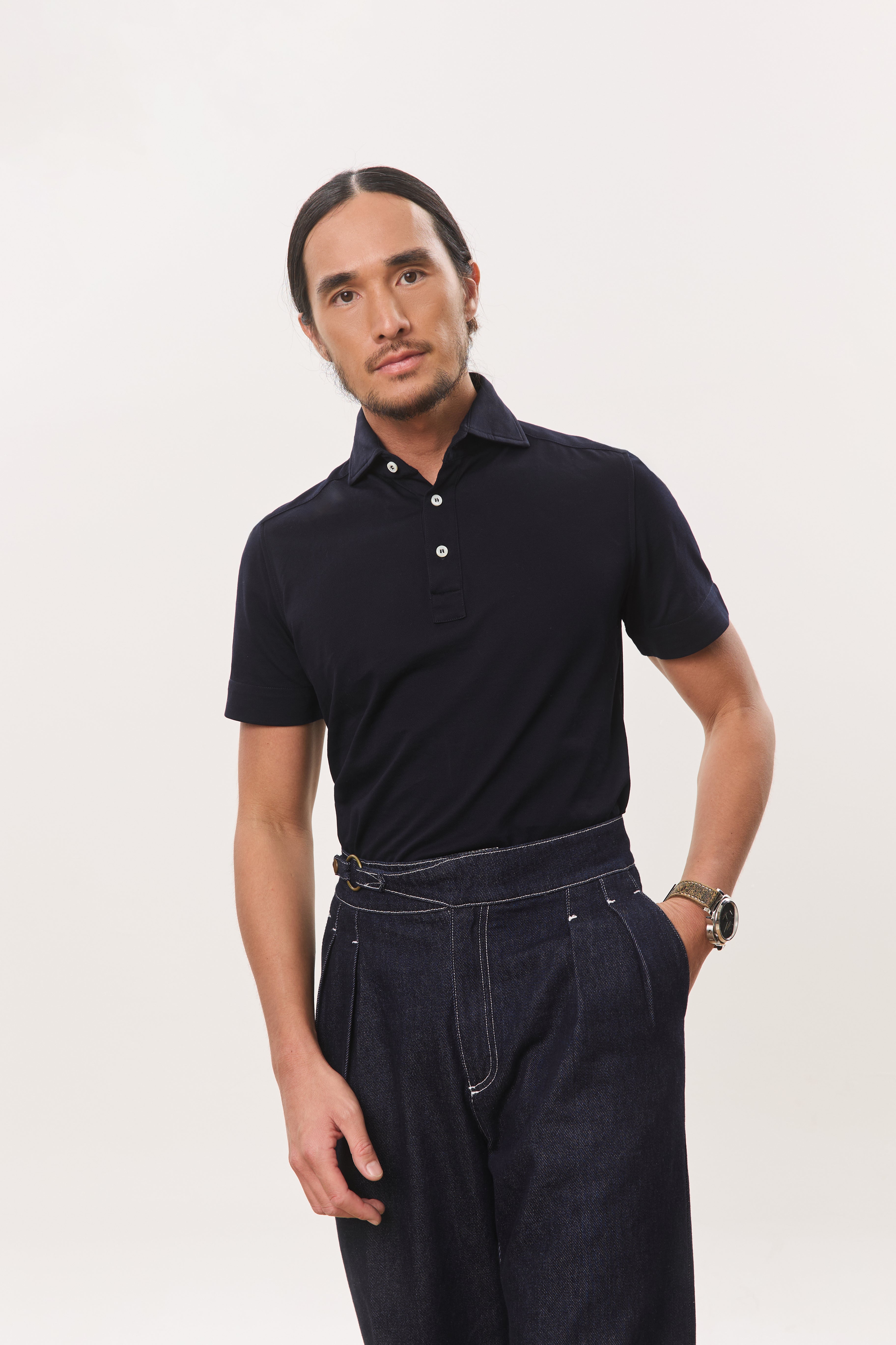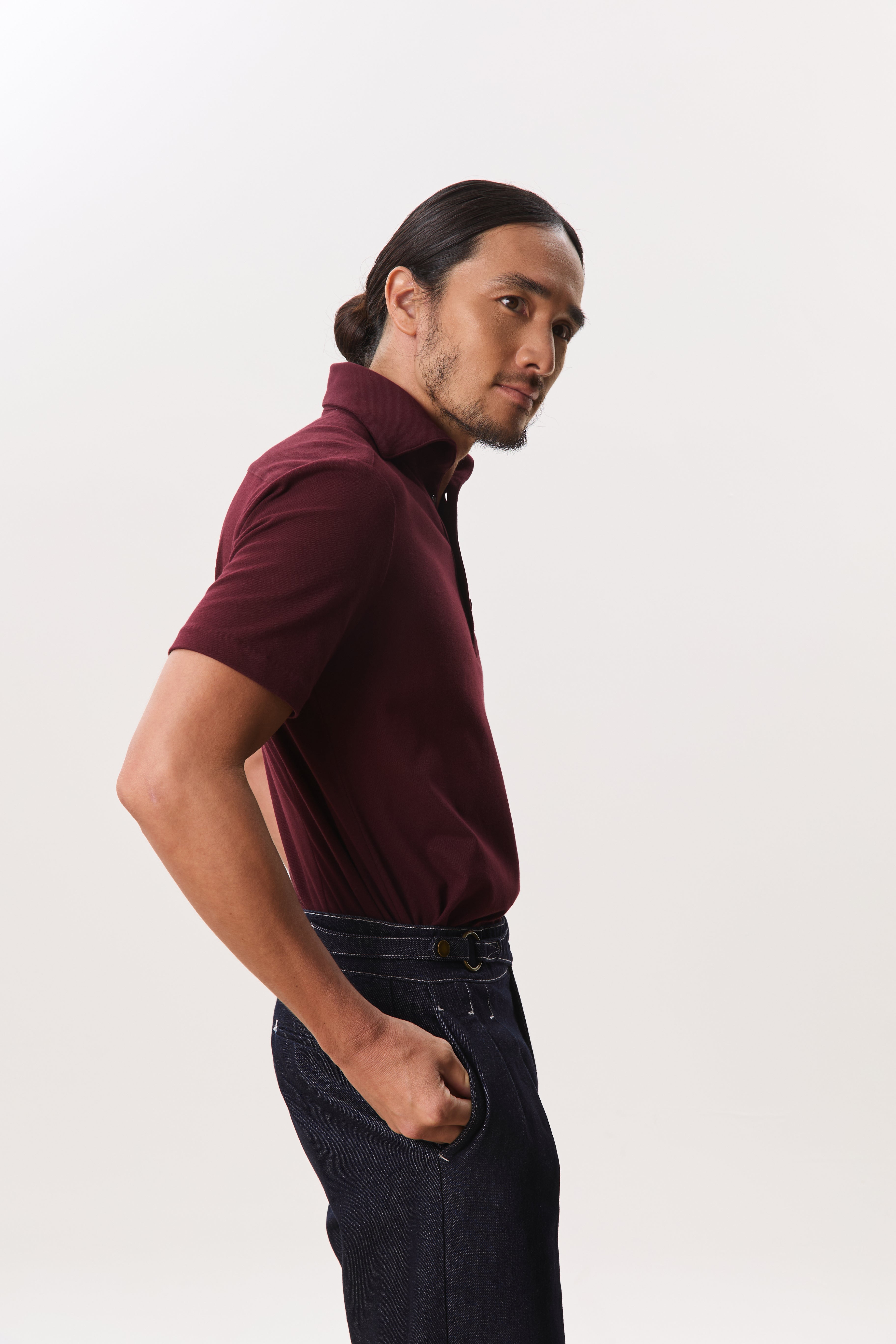 Cut from a soft, breathable jersey fabric, the Jori one-piece collar short sleeve polo is designed for ease, comfort, and a clean modern profile. Featuring a streamlined one-piece collar and a three-button front placket, it offers a refined alternative to the classic polo while maintaining everyday wearability. The modern fit sits close without feeling restrictive, and the curved hem allows for effortless styling whether worn tucked or untucked. Polished yet relaxed, Jori is a versatile staple that moves seamlessly between casual and elevated settings.