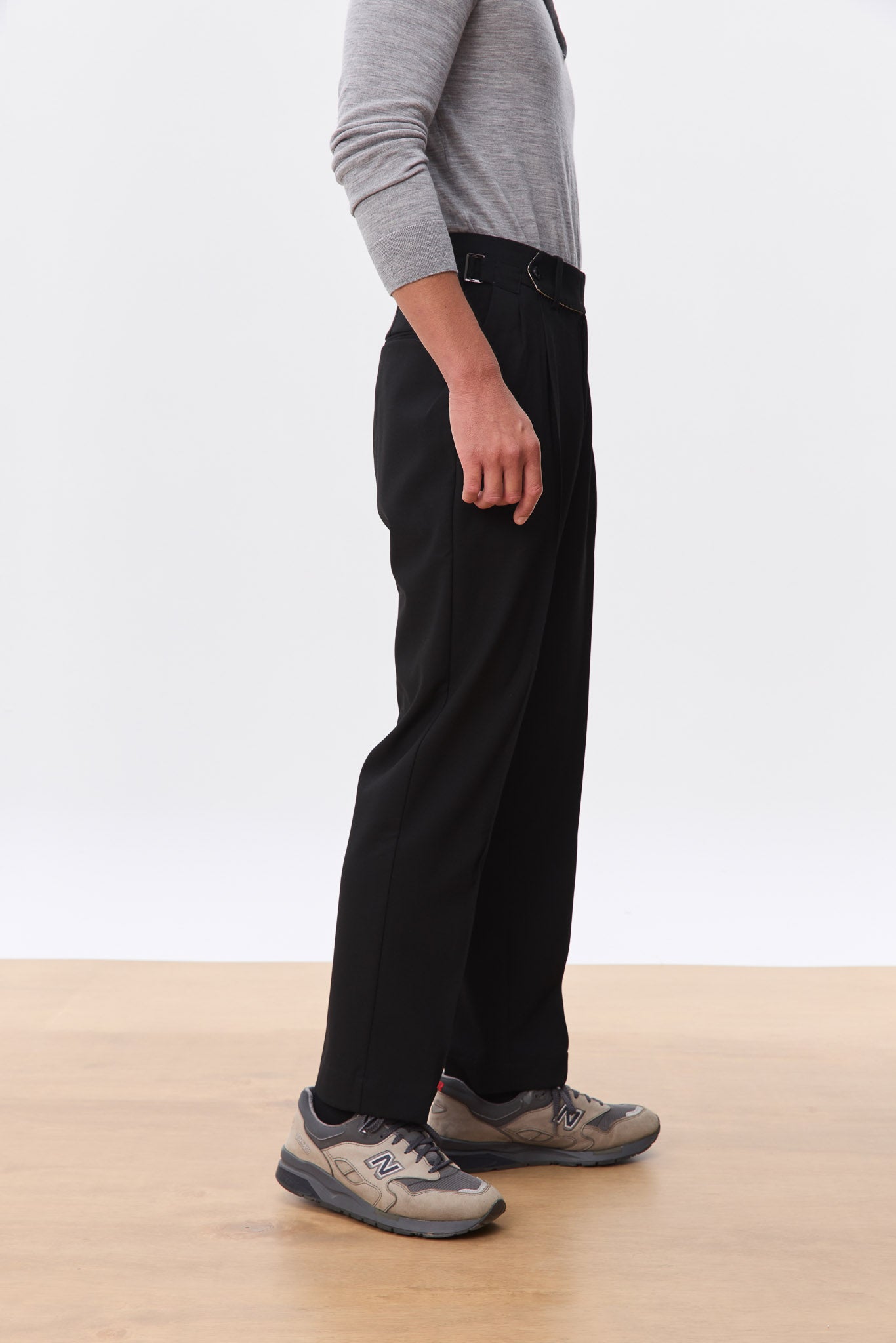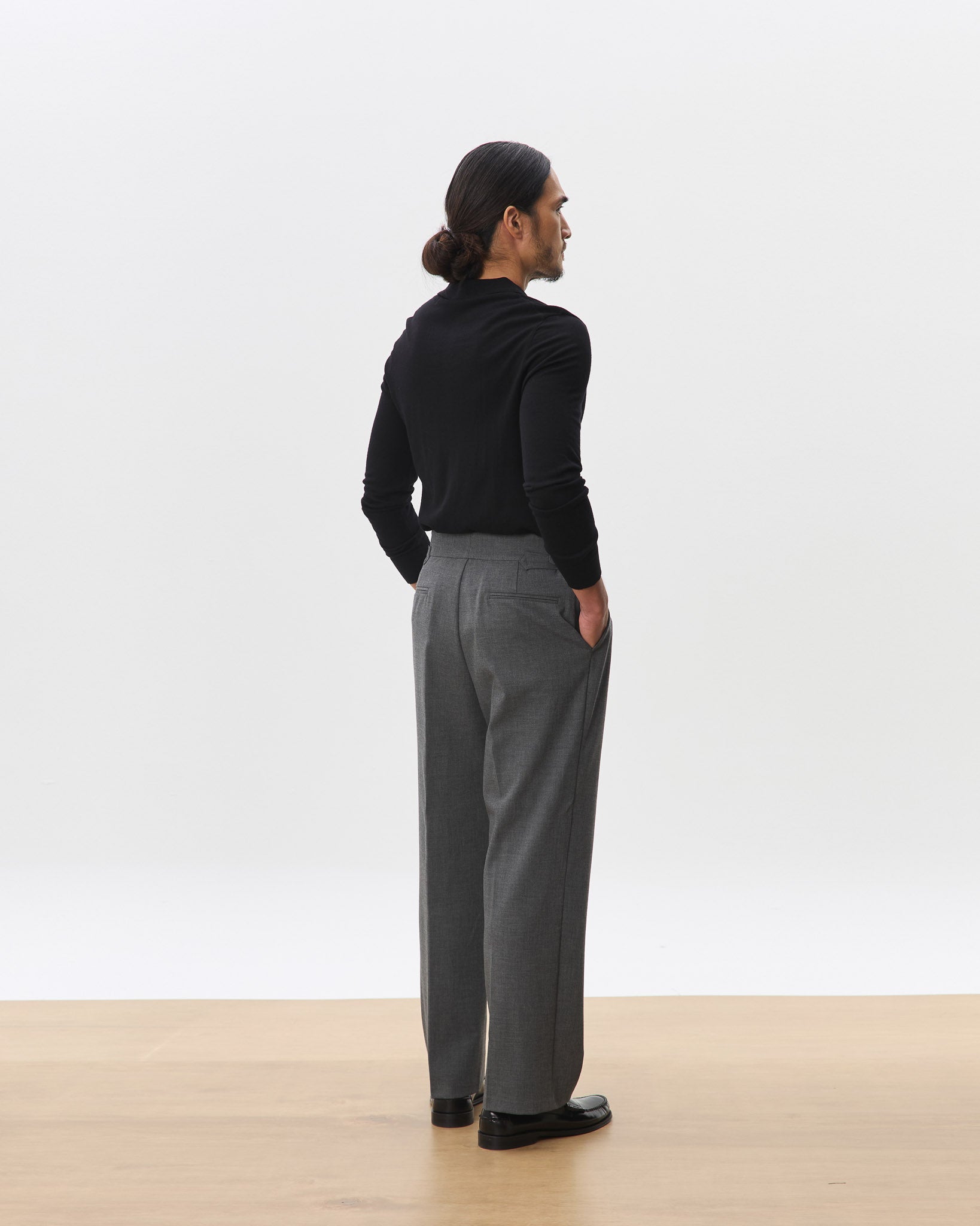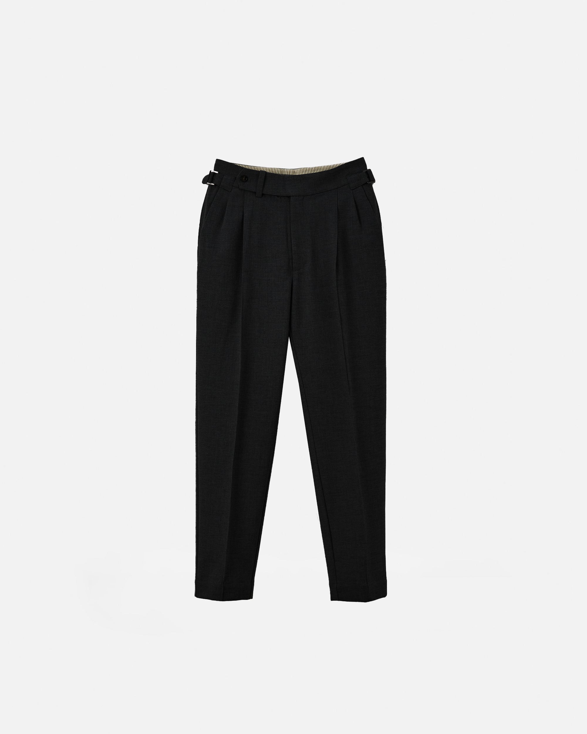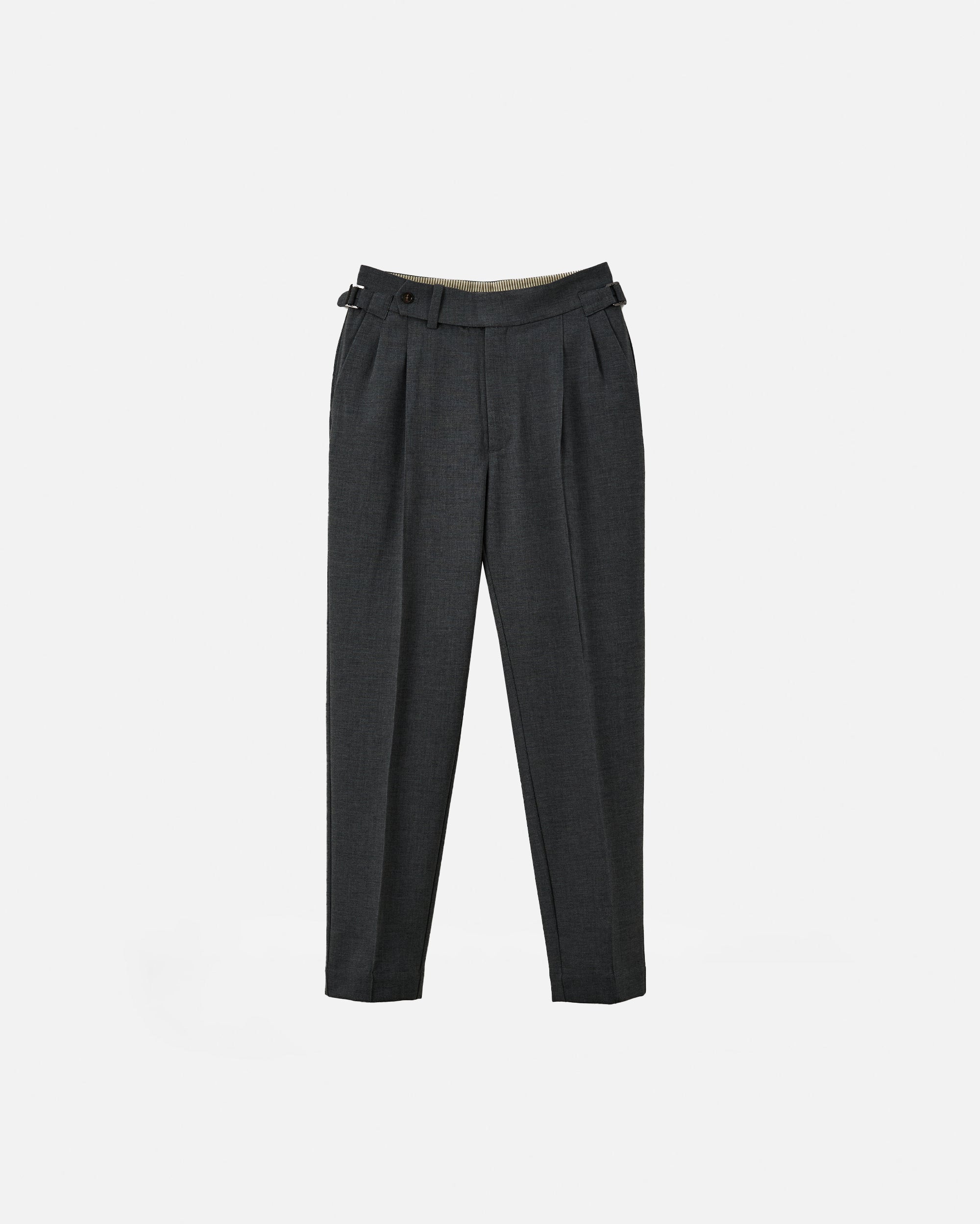 A sharp, high-waisted trouser tailored in a clean straight leg silhouette. Made from a soft, structured wool-blend suiting, the Kuma features an extended tab closure, reverse pleats, and side adjusters for a customisable fit. The drape is fluid yet grounded, offering everyday comfort with a refined edge. A versatile foundation that pairs effortlessly with everything from polished shirting to casual knits.
