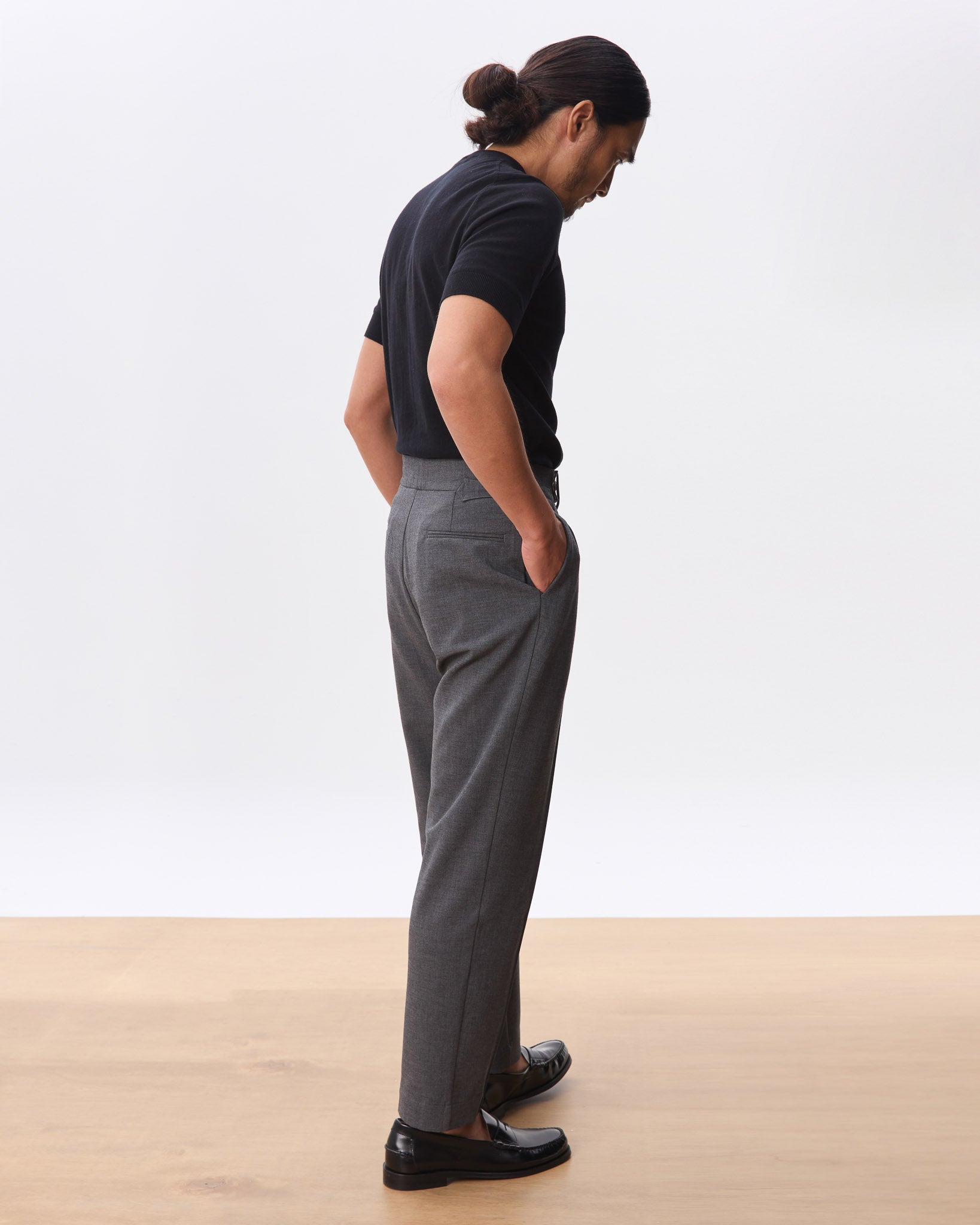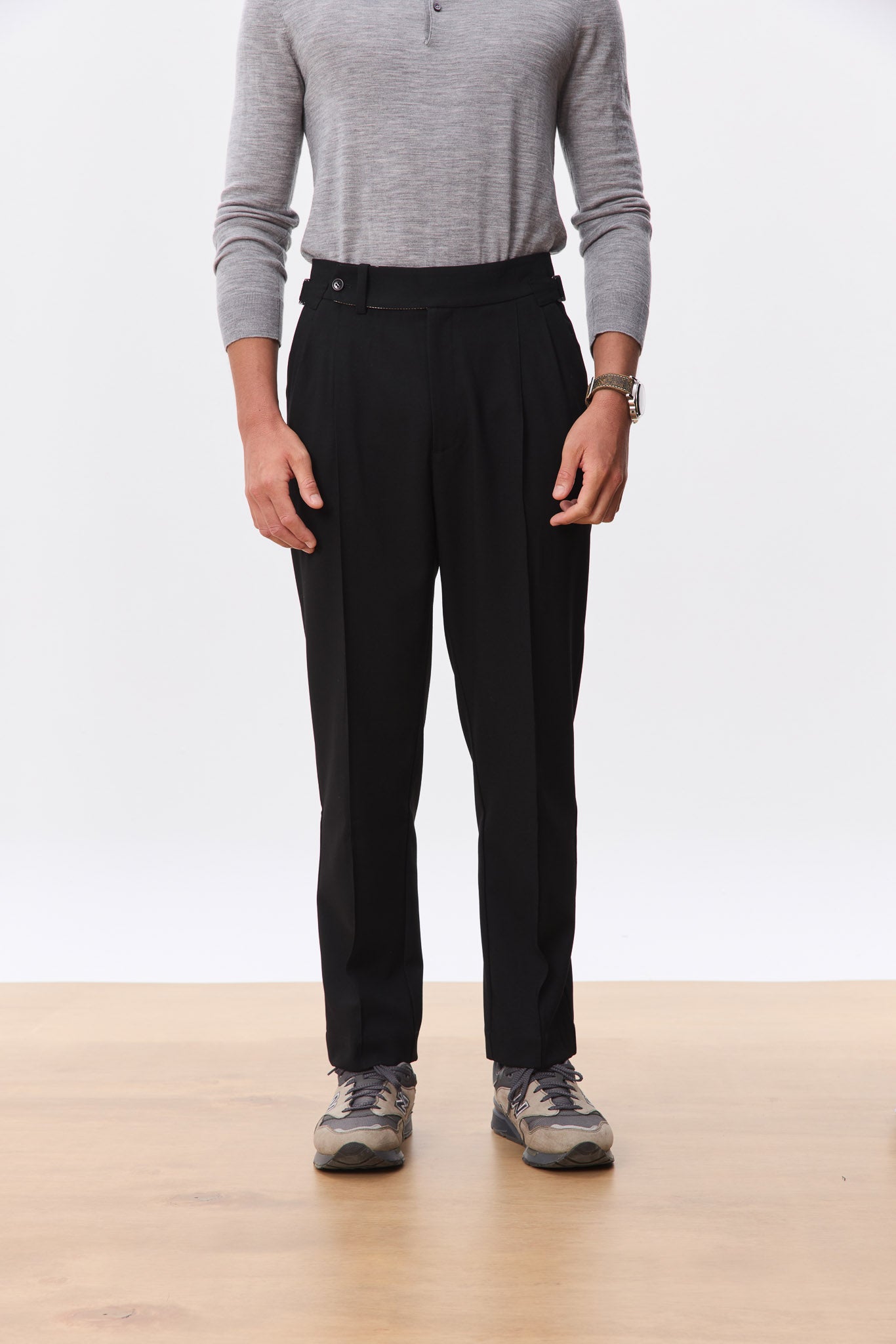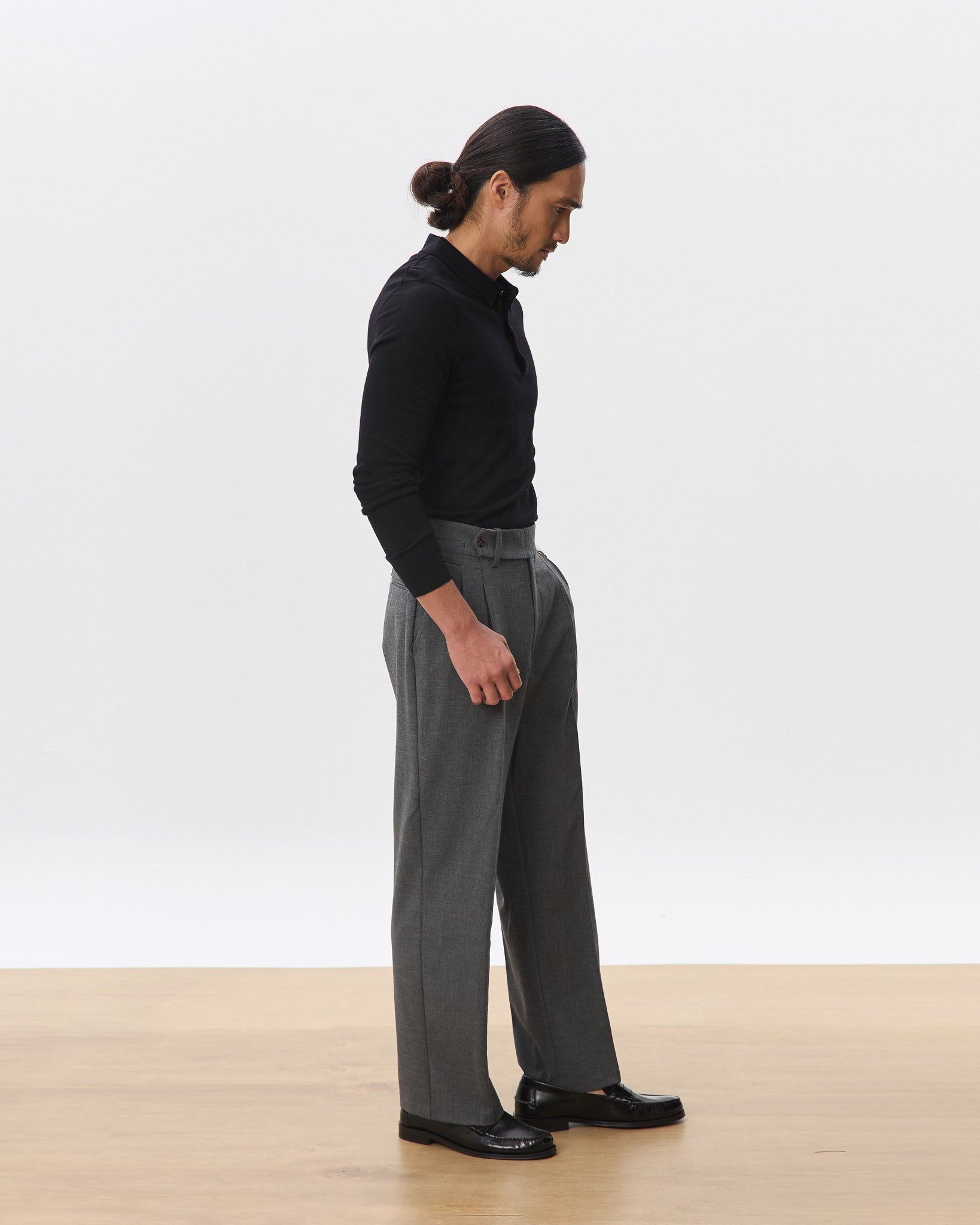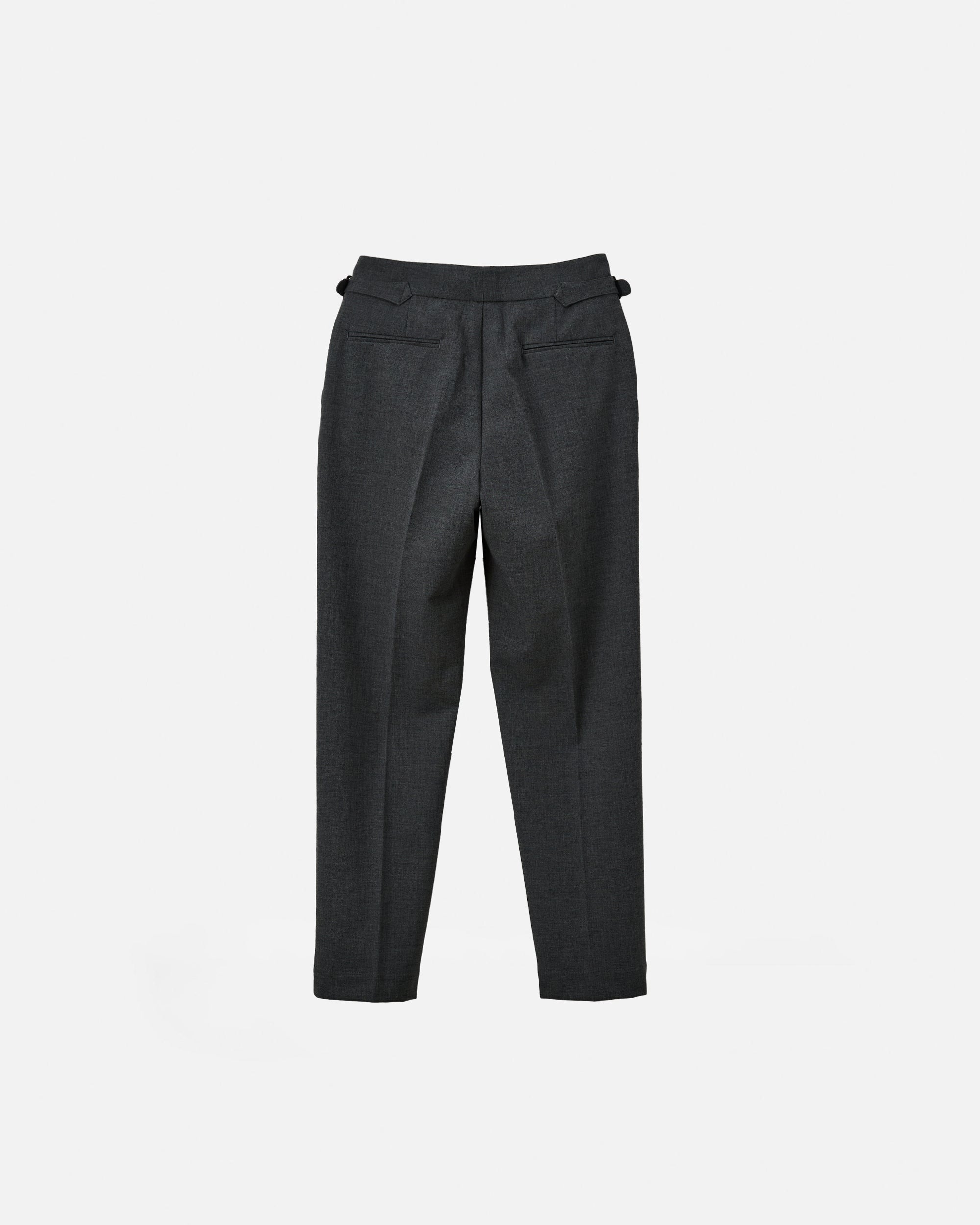 A sharp, high-waisted trouser tailored in a clean straight leg silhouette. Made from a soft, structured wool-blend suiting, the Kuma features an extended tab closure, reverse pleats, and side adjusters for a customisable fit. The drape is fluid yet grounded, offering everyday comfort with a refined edge. A versatile foundation that pairs effortlessly with everything from polished shirting to casual knits.