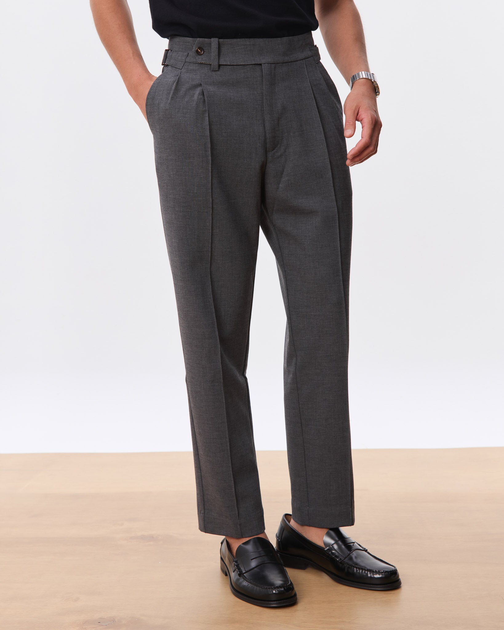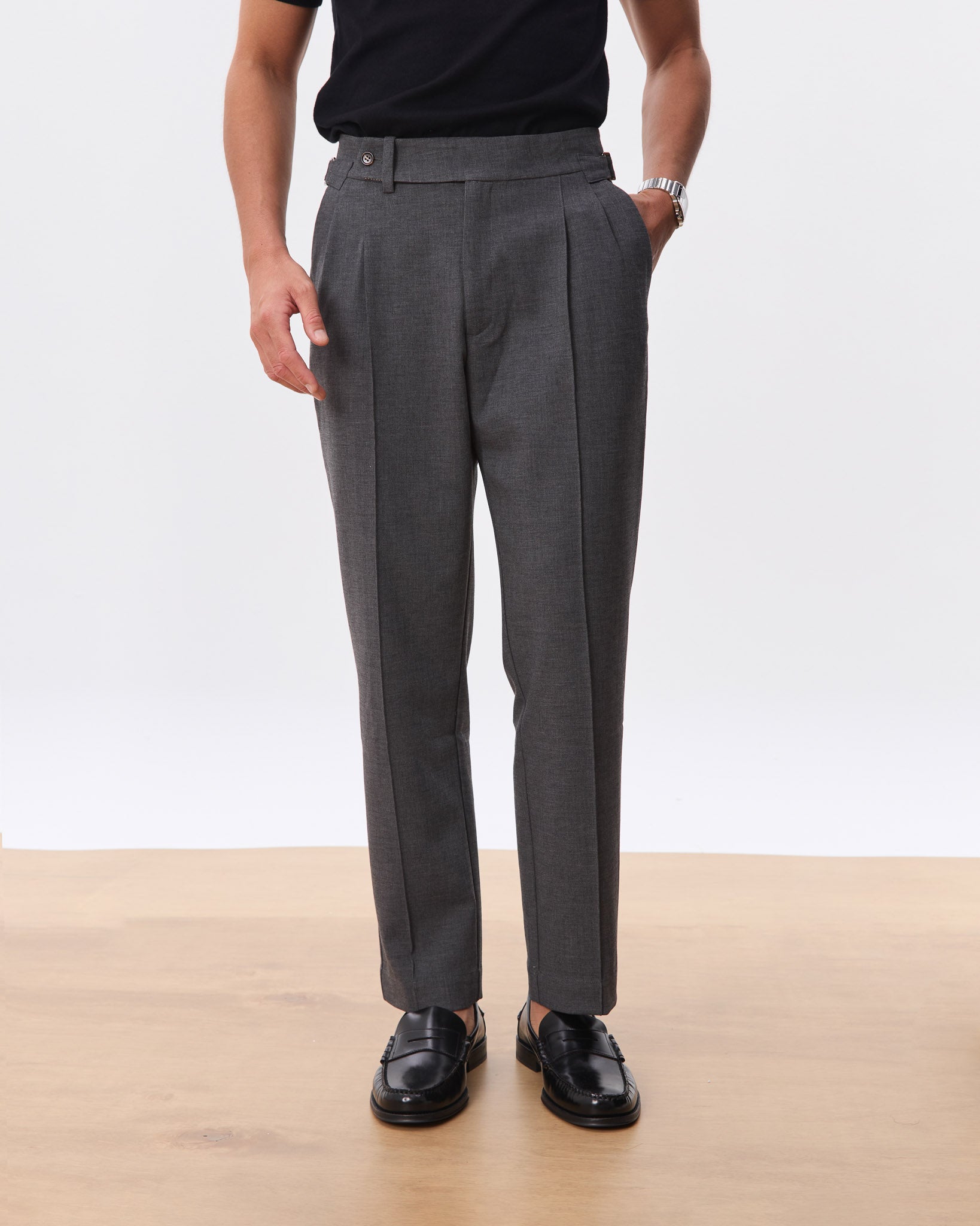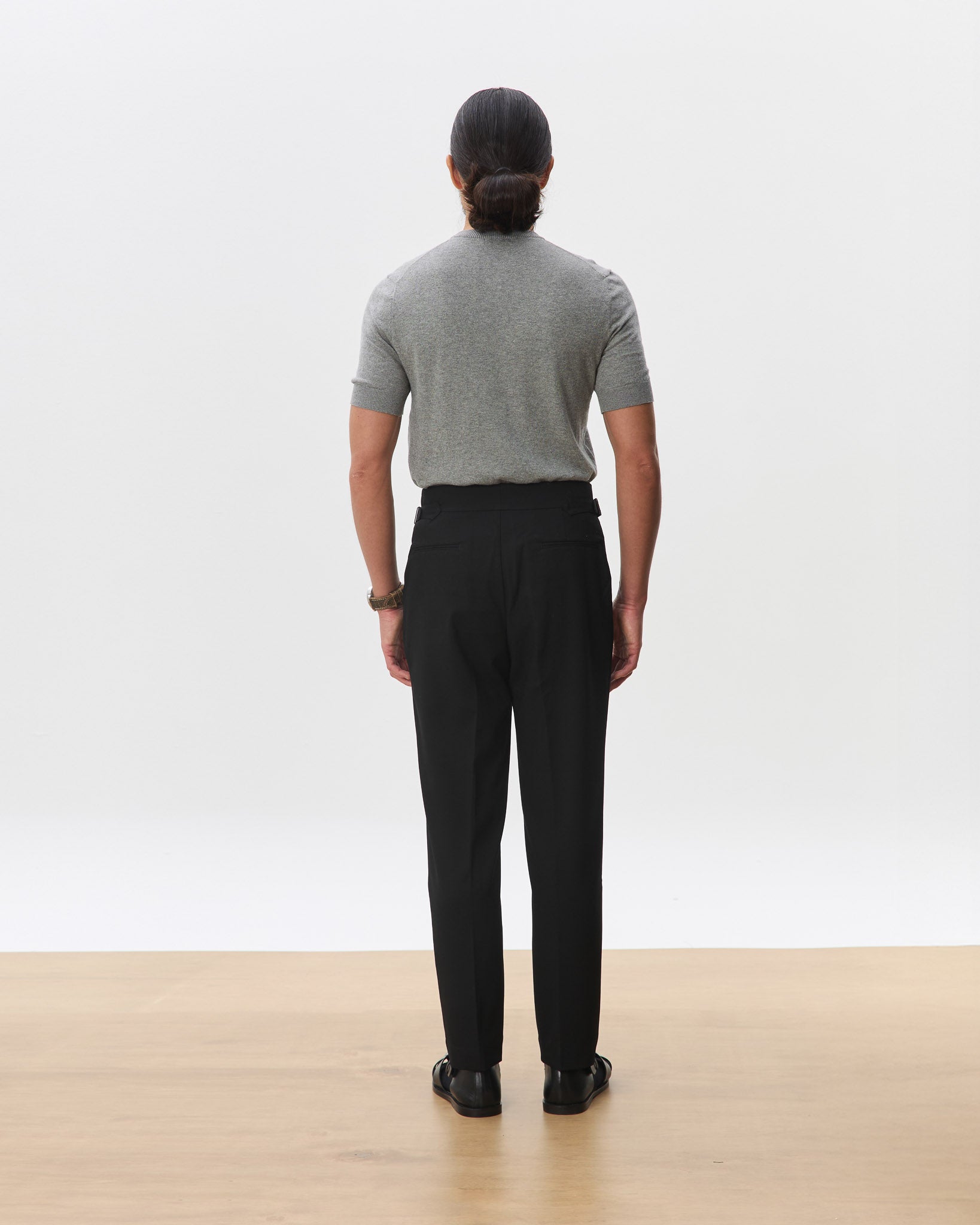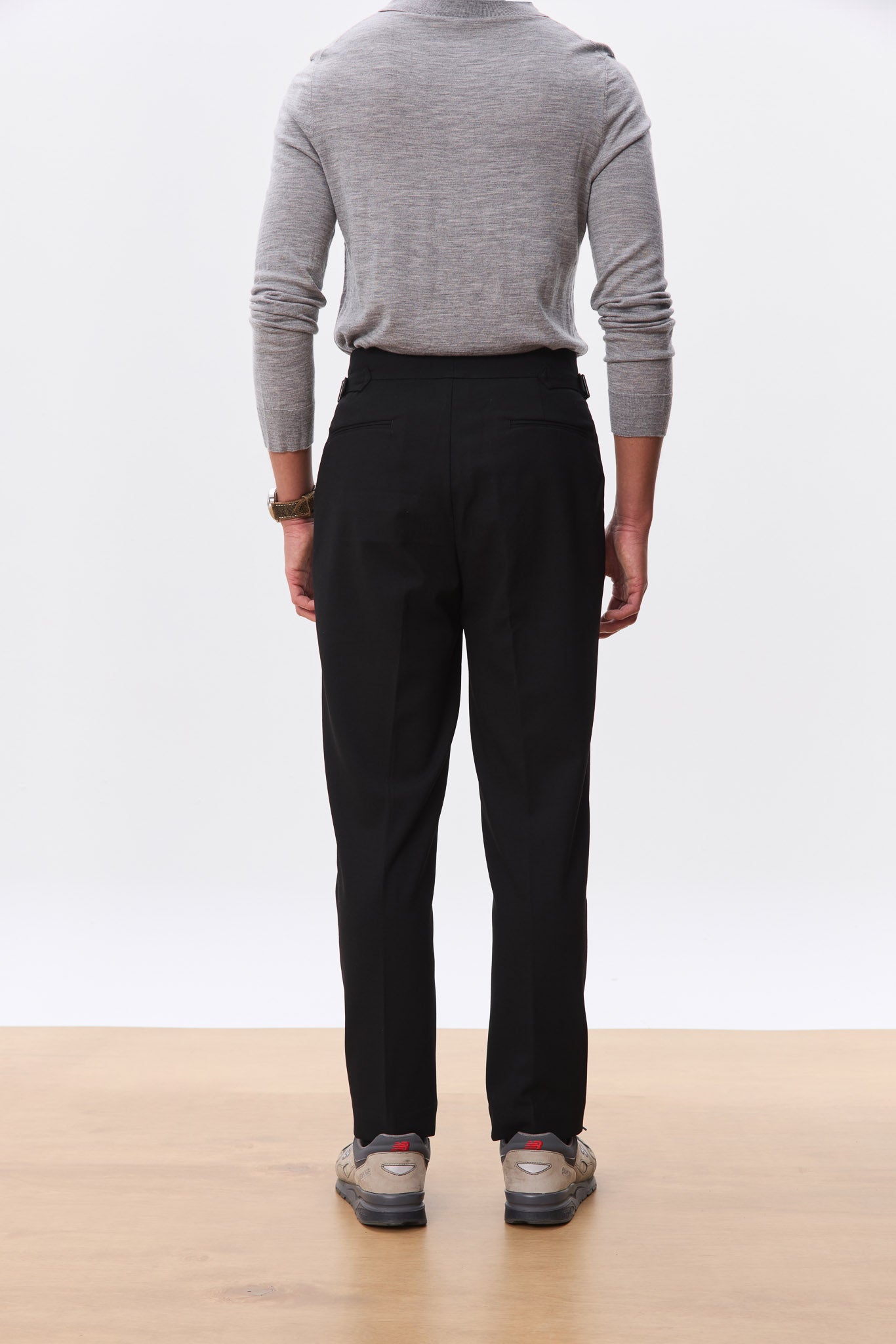 A sharp, high-waisted trouser tailored in a clean straight leg silhouette. Made from a soft, structured wool-blend suiting, the Kuma features an extended tab closure, reverse pleats, and side adjusters for a customisable fit. The drape is fluid yet grounded, offering everyday comfort with a refined edge. A versatile foundation that pairs effortlessly with everything from polished shirting to casual knits.